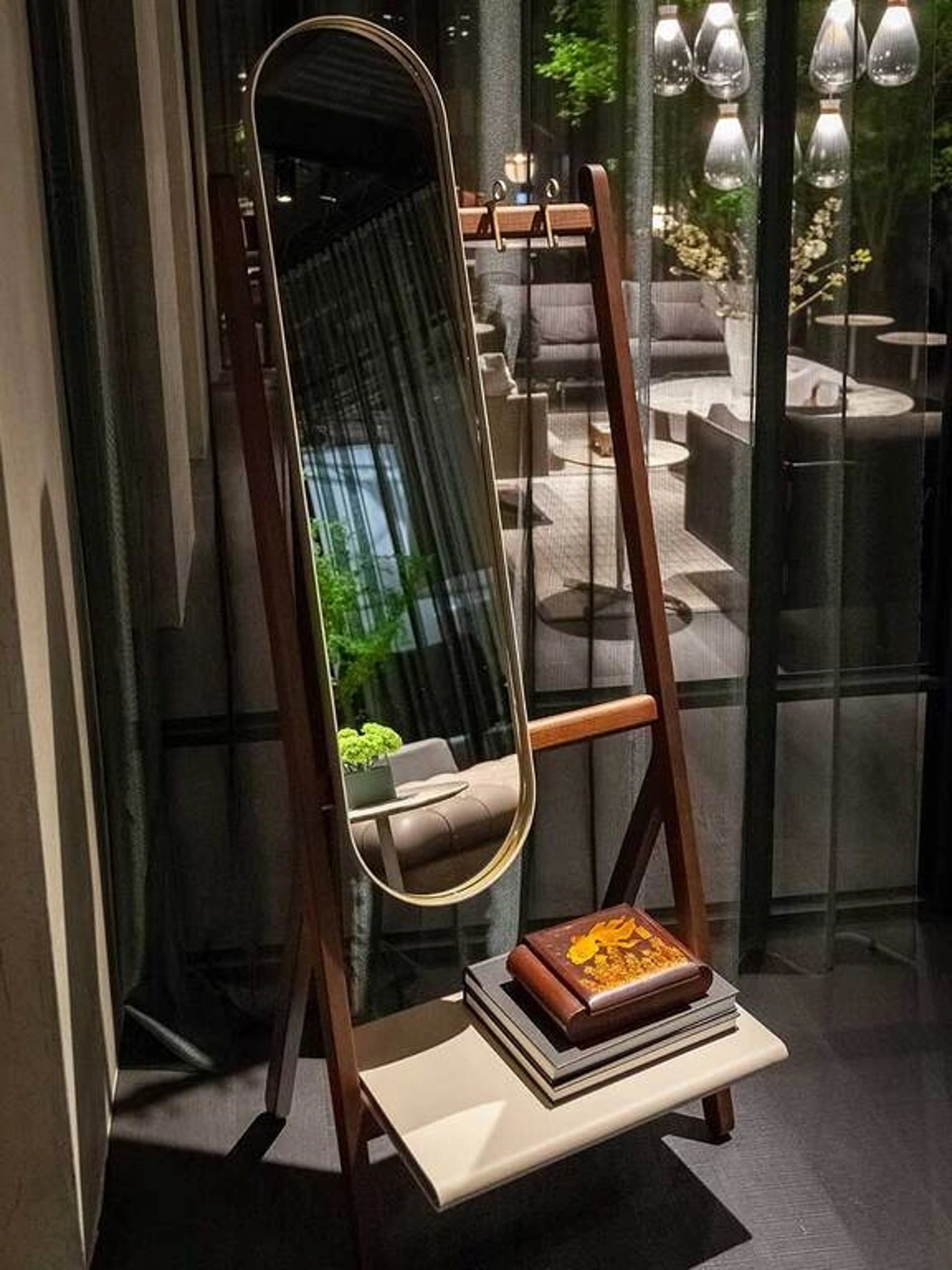 Desideri completare i tuoi interni con i Complementi Poltrona Frau? Eccoti vari modelli di specchi in cuoio come Ren Specchio Appendiabiti da terra.