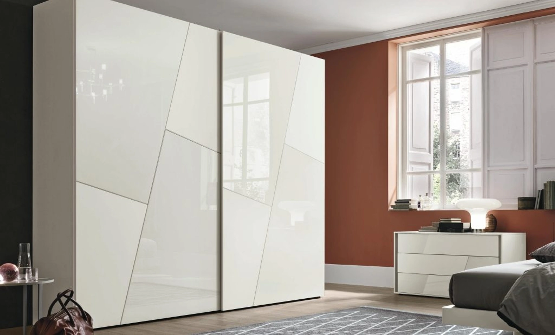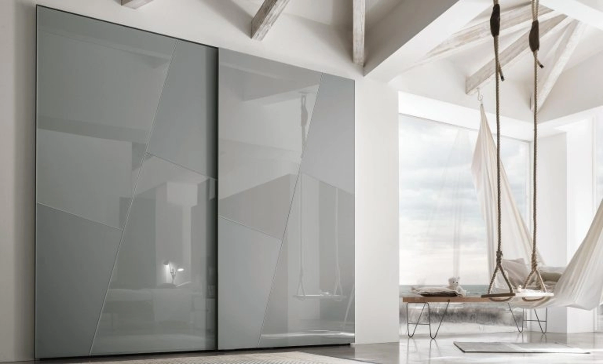 Eccoti l'armadio Kross in vetro di Tomasella! Un ricco catalogo di armadi a muro con ante scorrevoli.
