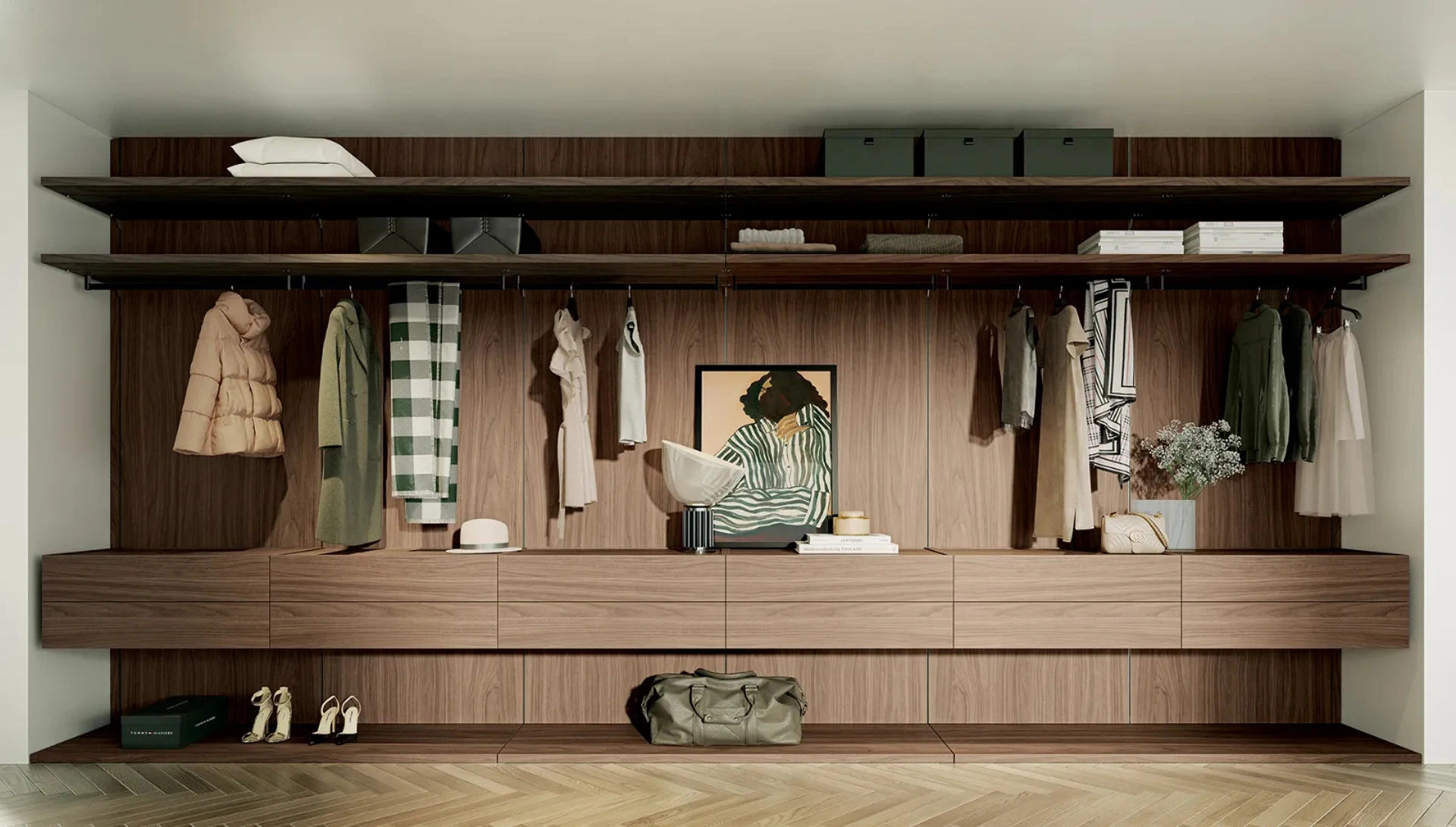 Per la tua casa a Cosenza, Paola e Amantea, la Cabina Armadio Rack System di Dielle Modus rappresenta la soluzione ideale per ottimizzare lo spazio con stile e funzionalità. Offriamo un servizio di progettazione su misura per integrare perfettamente questo sistema modulare nella tua abitazione, garantendo un'installazione professionale e una consulenza dedicata. I pannelli boiserie e l'innovativo sistema a cremagliera consentono una personalizzazione completa, con mensole e cassetti posizionabili a qualsiasi altezza, adattandosi a ogni esigenza. Grazie alla sua flessibilità con configurazioni lineari o angolari e moduli personalizzabili, inclusa un'altezza massima di 278 cm e diverse profondità, è possibile arricchirla con un'ampia gamma di attrezzature interne per un'organizzazione impeccabile. Approfitta della nostra expertise per creare la cabina armadio dei tuoi sogni, con la certezza di un supporto completo e un'assistenza post-vendita affidabile per un investimento duraturo nel tempo.