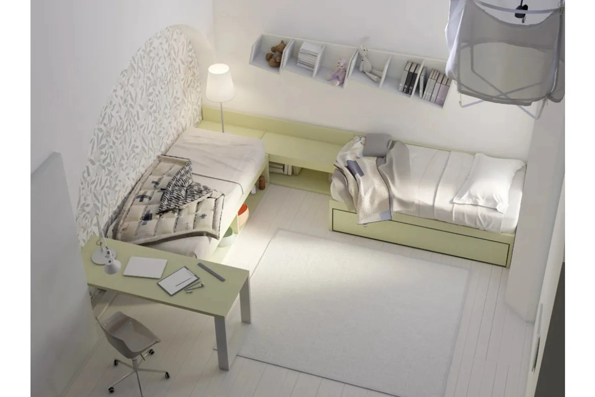 Porta contenuto estetico e tonalità vivaci nella stanza dedicata ai bambini con questa soluzione, una delle Camerette componibili per ragazzi di Dielle. Se cerchi spunti progettuali per progettare al meglio la stanza dei tuoi figli, ti presentiamo la Cameretta componibile C12 Letti a terra di Dielle con finitura in laccato opaco. Dielle mette a disposizione una ricca gamma di accessori da comporre su misura: troverai letto, guardaroba, tavolo da lavoro, sedie e librerie. Questa soluzione in laccato opaco ultima al meglio le qualità pratiche e l'estetica della camaretta, in quanto è capace di congiungere ergonomia e sicurezza.