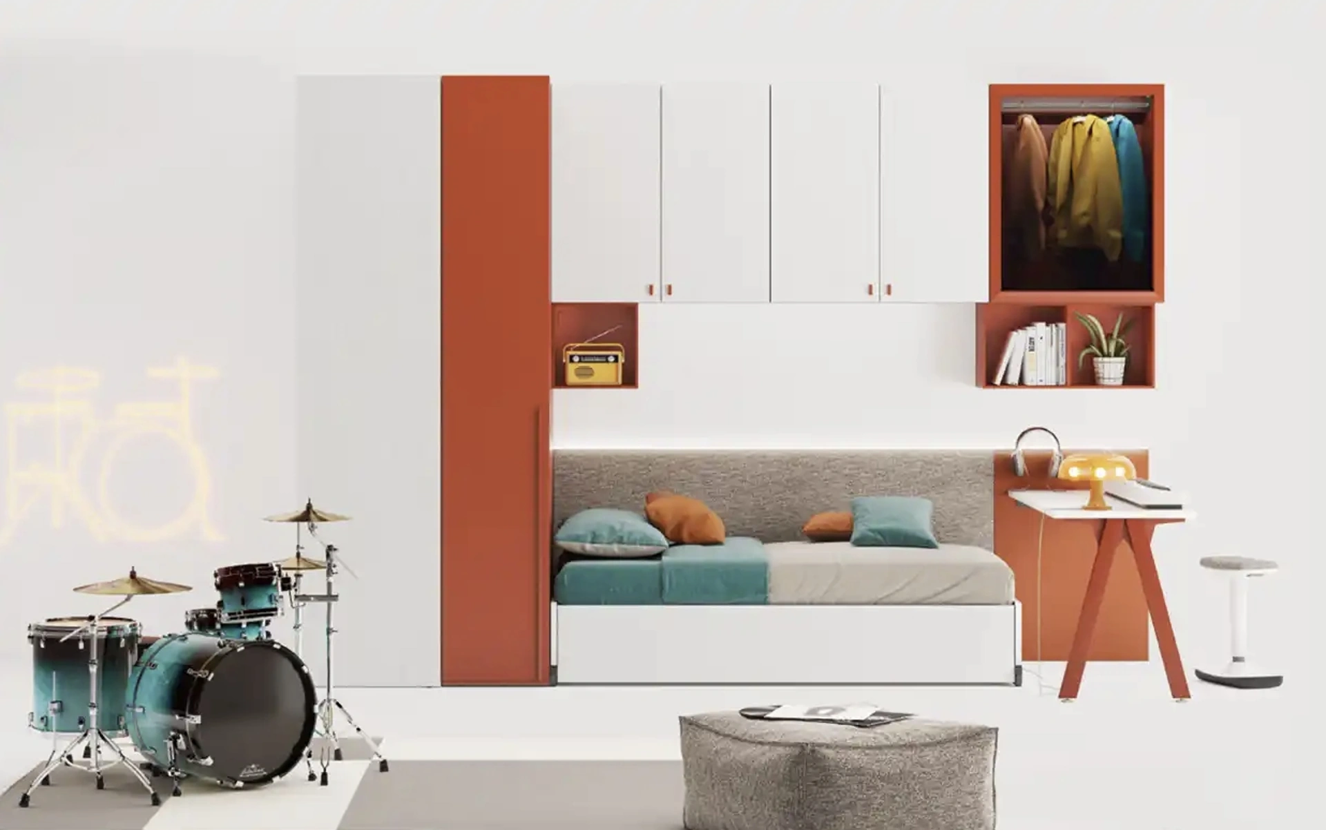 I nostri bambini trascorrono ore della giornata nelle loro camere da letto: rendile adatte per dedicarsi alla scuola, giocare e riposare ogni giorno. Le Camerette dei nostri figli sono il luogo dove diventeranno grandi giocando e sognando, dunque è essenziale che lo spazio sia ben organizzato. Presentiamo nel nostro showroom diverse Camerette a ponte moderne per ragazzi del brand, ideali per accompagnarli durante la loro crescita. Con la Cameretta YGAB di Moretti Compact Camerette in melaminico ti garantirai un perfetto mix di funzionalità ed ergonomia, ideale per la stanza dei tuoi figli.