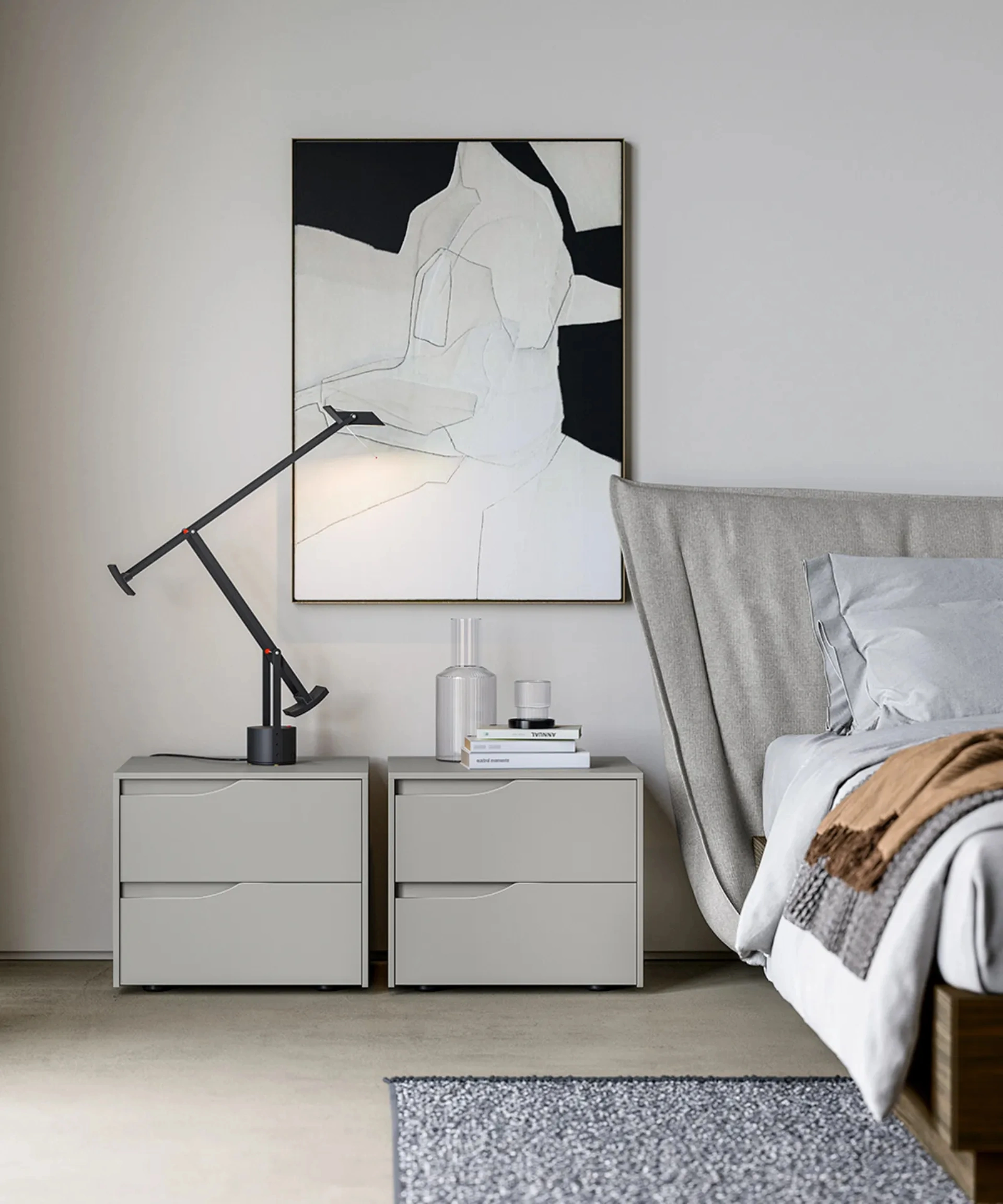 Una ricca gamma di cassettiere Dielle Modus: i comodini moderni in laccato opaco, come Wind, sono tra le soluzioni più esclusive.
