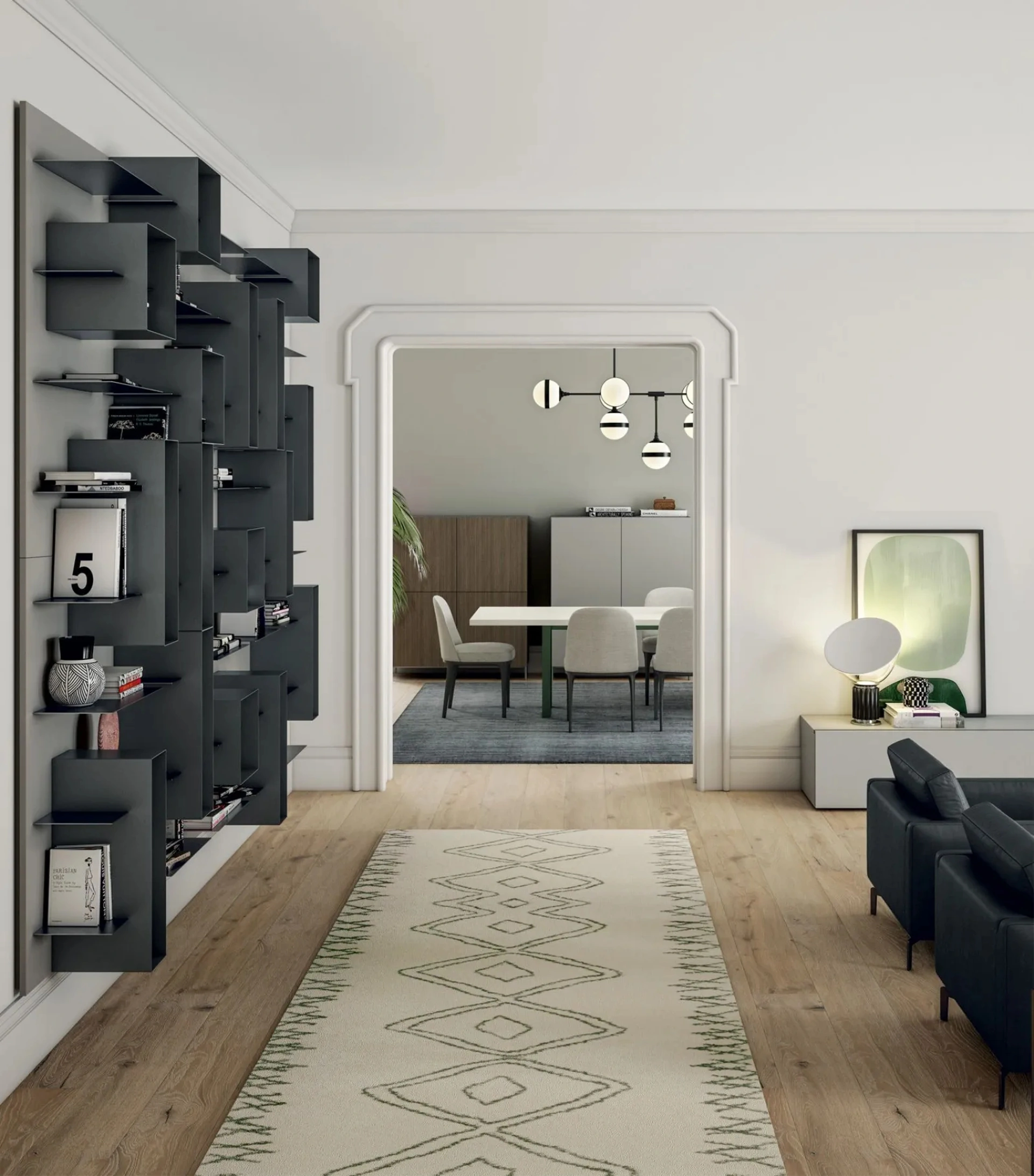 Scopri la composizione LINE UP 07 di Dielle Modus, un'esclusiva parete a boiserie dal design moderno e versatile, ora disponibile presso lo showroom Expo Design & Contract Srls ad Amantea. Questa soluzione d'arredo, caratterizzata da innovativi box metallici modulari, ti offre infinite possibilità di configurazione per personalizzare ogni ambiente. Progettata su misura al centimetro, si adatta perfettamente a ogni esigenza di spazio e stile, con elementi che includono eleganti boiserie e mensole in metallo, oltre a pratici box sospesi. Expo Design & Contract Srls è il tuo partner d'arredo di fiducia, offrendo soluzioni di alta qualità e design per la tua casa o ufficio.