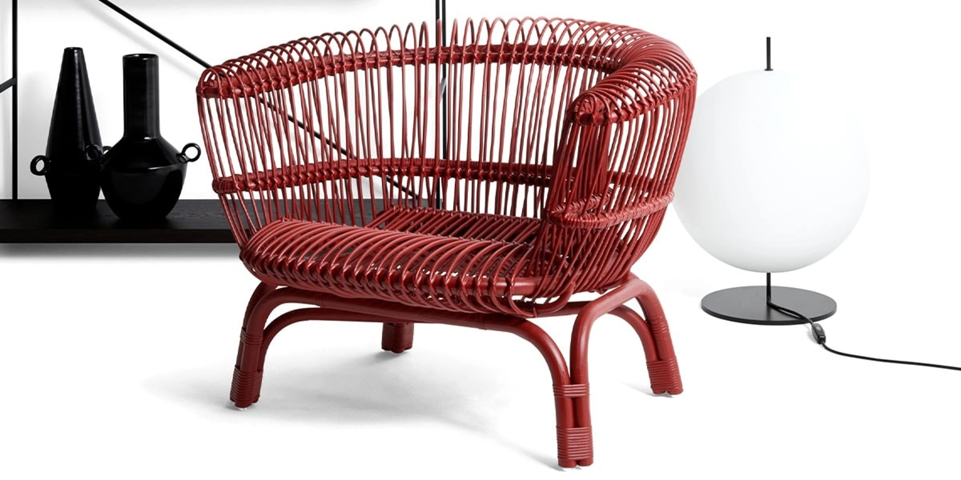 Se vuoi una poltroncina per stanze design, clicca e leggi di più sul modello Silvia in rattan del marchio De Padova.