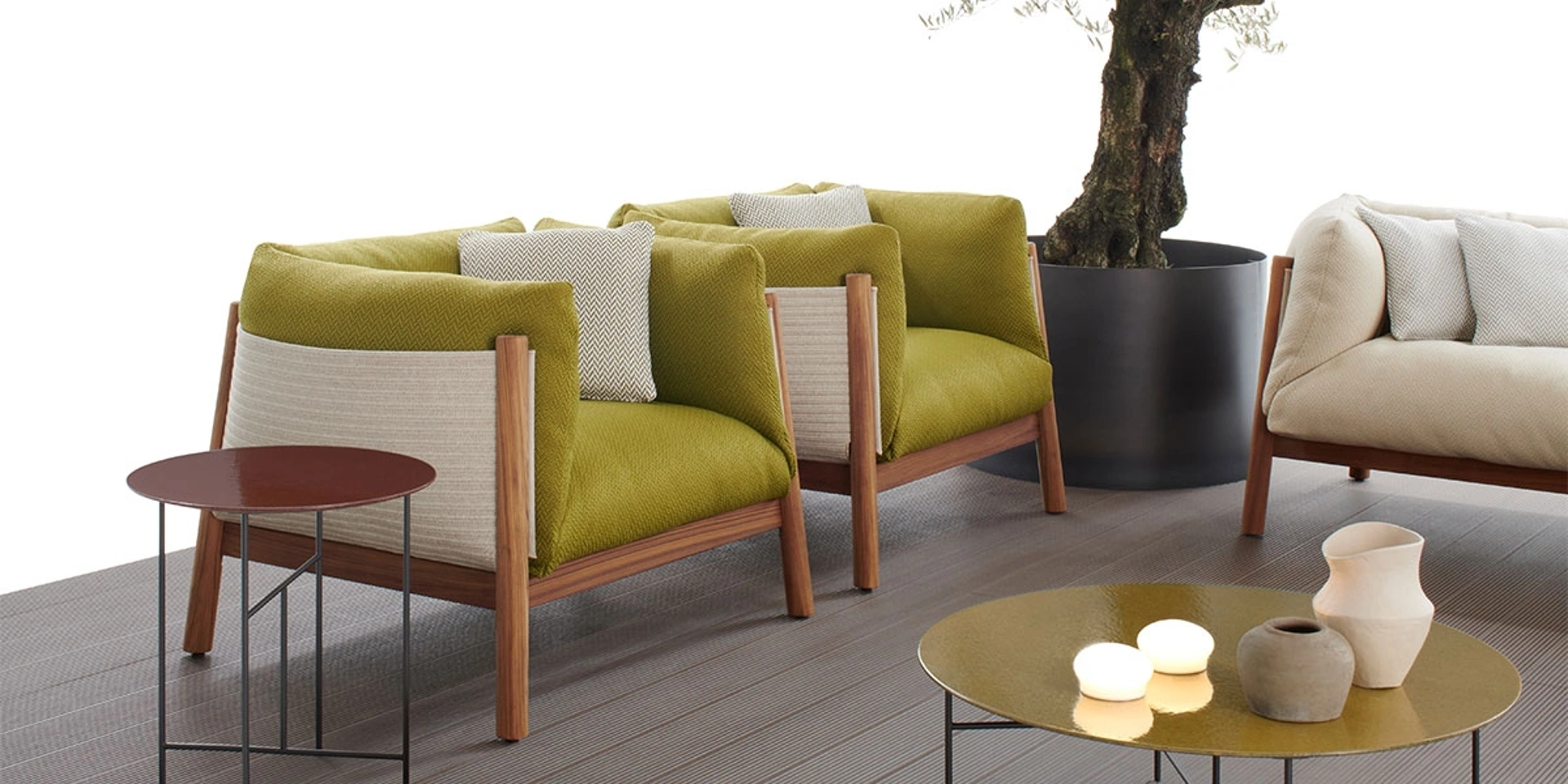 Se desideri una poltroncina per stanze moderne, clicca e leggi di più sul modello Yak Outdoor in tessuto dell'azienda De Padova.
