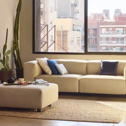 Se desideri divani per salotti moderni, clicca e leggi di più sul modello Diletto in tessuto della marca Flou.