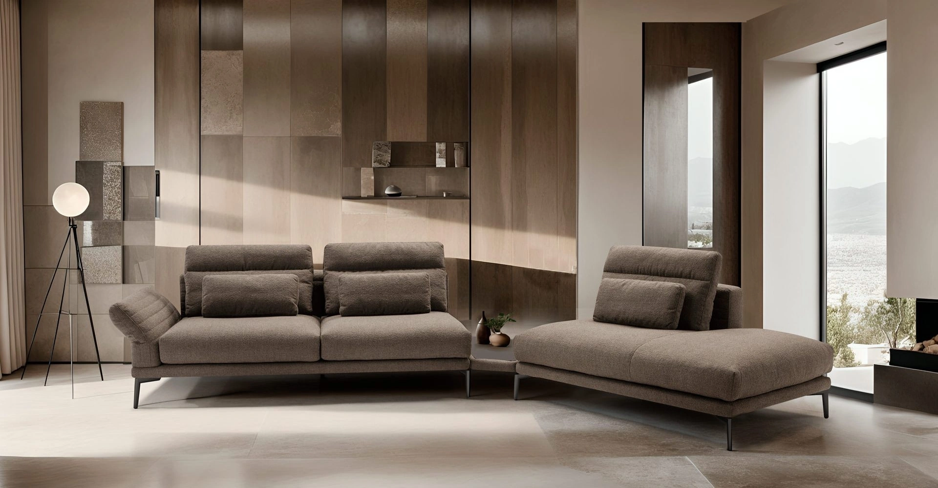 Il divano Tenco, creazione di Franco Ferri, si distingue per un'estetica raffinata e un'ingegneria funzionale. Il suo design è impreziosito da braccioli e spalliere con meccanismi di regolazione manuale, permettendo un adattamento ergonomico su misura. La struttura è elevata da terra tramite eleganti piedi metallici dal profilo essenziale, facilitando l'integrazione in contesti abitativi contemporanei. Questo modello assicura un'esperienza di relax superiore, con una notevole attenzione alle finiture, tra cui la pregiata pelle. La scelta dei materiali e la cura dei dettagli sono elementi distintivi che garantiscono durata e stile.