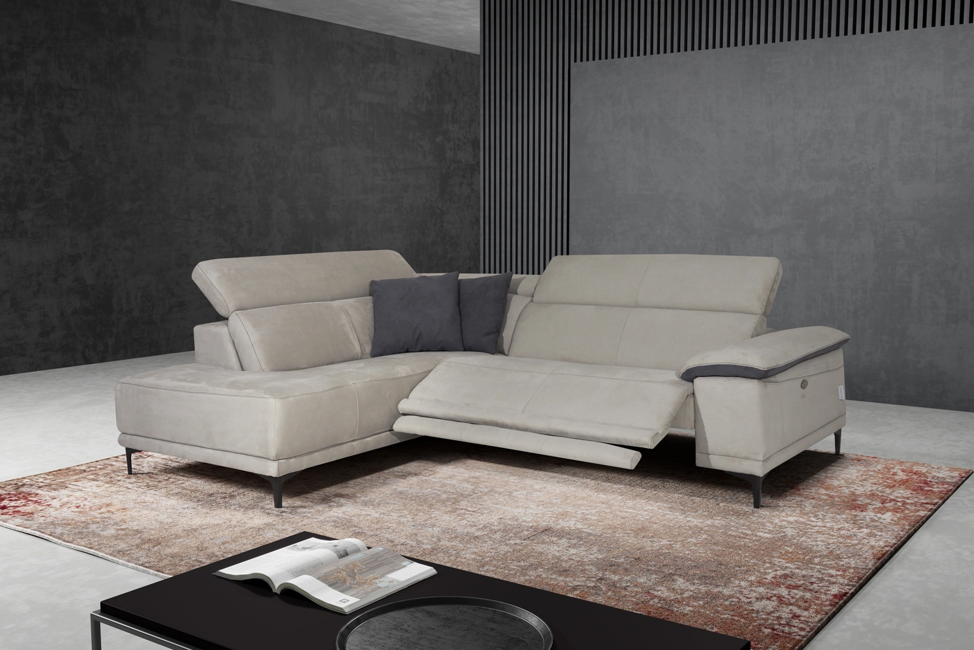 Con salotti e divani ad angolo di Kermes divani come il modello Vision in microfibra, potrai ultimare il tuo concept d'arredo.