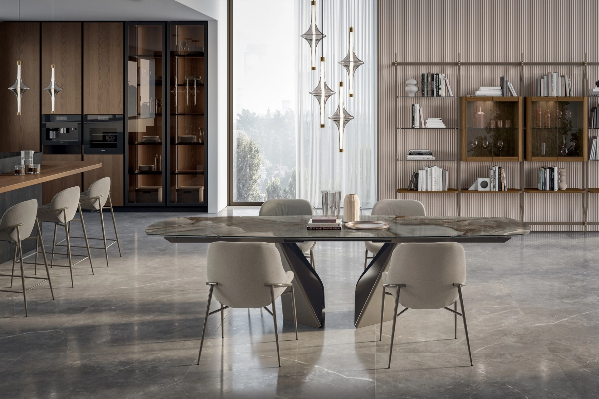 I Tavoli sono tra i mobili e oggetti accessori più importanti della zona giorno e dell'ambiente cucina, ambienti dedicati all'ospitalità dove ci si ritrova con familiari e amici. Se vuoi assicurarti un certo stile nei locali domestici, ma vuoi anche rendere gli ambienti agibili e confortevoli, allora le nostre soluzioni fanno per te. Un tavolo che si rispetti deve essere in materiali pregiati, cosicché sia resistente e preservi nel tempo il valore estetico che lo contraddistinguono. Tavolo Kaleido di Bontempi: nel nostro punto vendita ti sta aspettando una scelta quasi infinita di composizioni arredative di elevata qualità. L'esclusivo brand Bontempi presenta una ricca gamma di Tavoli da pranzo allungabili, tra cui anche quelli ideali per valorizzare al meglio locali design.