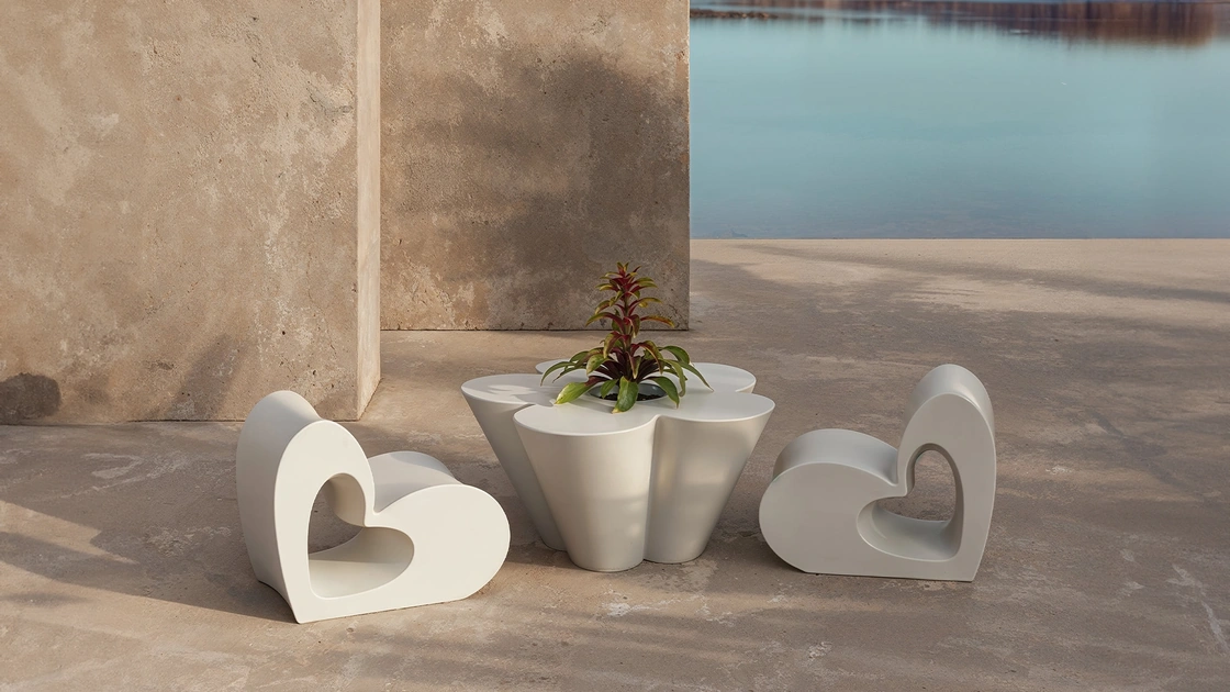 La collezione Agatha Chair & Table di Vondom, creata dalla celebre designer spagnola, è la linea d'arredo pensata per i più piccoli del brand, caratterizzata da un'estetica vivace, dinamica e spontanea. Gli elementi iconici, quali fiori e cuori, sono immediatamente riconoscibili nelle linee essenziali e sofisticate. La collezione include sedie, tavoli e fioriere in miniatura. Realizzati in polietilene riciclabile di alta qualità, lavorato con stampaggio rotazionale, questi arredi sono estremamente duraturi, resistenti agli urti e ai raggi UV (con protezione UV8, ideale per lunghe esposizioni solari), rendendoli perfetti per ambienti interni ed esterni. Il materiale robusto e sostenibile li rende ideali per spazi dedicati al gioco, creando un contesto incantevole che nutre la vitalità e la fantasia dei bambini. L'investimento in questa collezione assicura una durabilità eccezionale e un design che resiste alla prova del tempo, garantendo un valore intrinseco superiore.