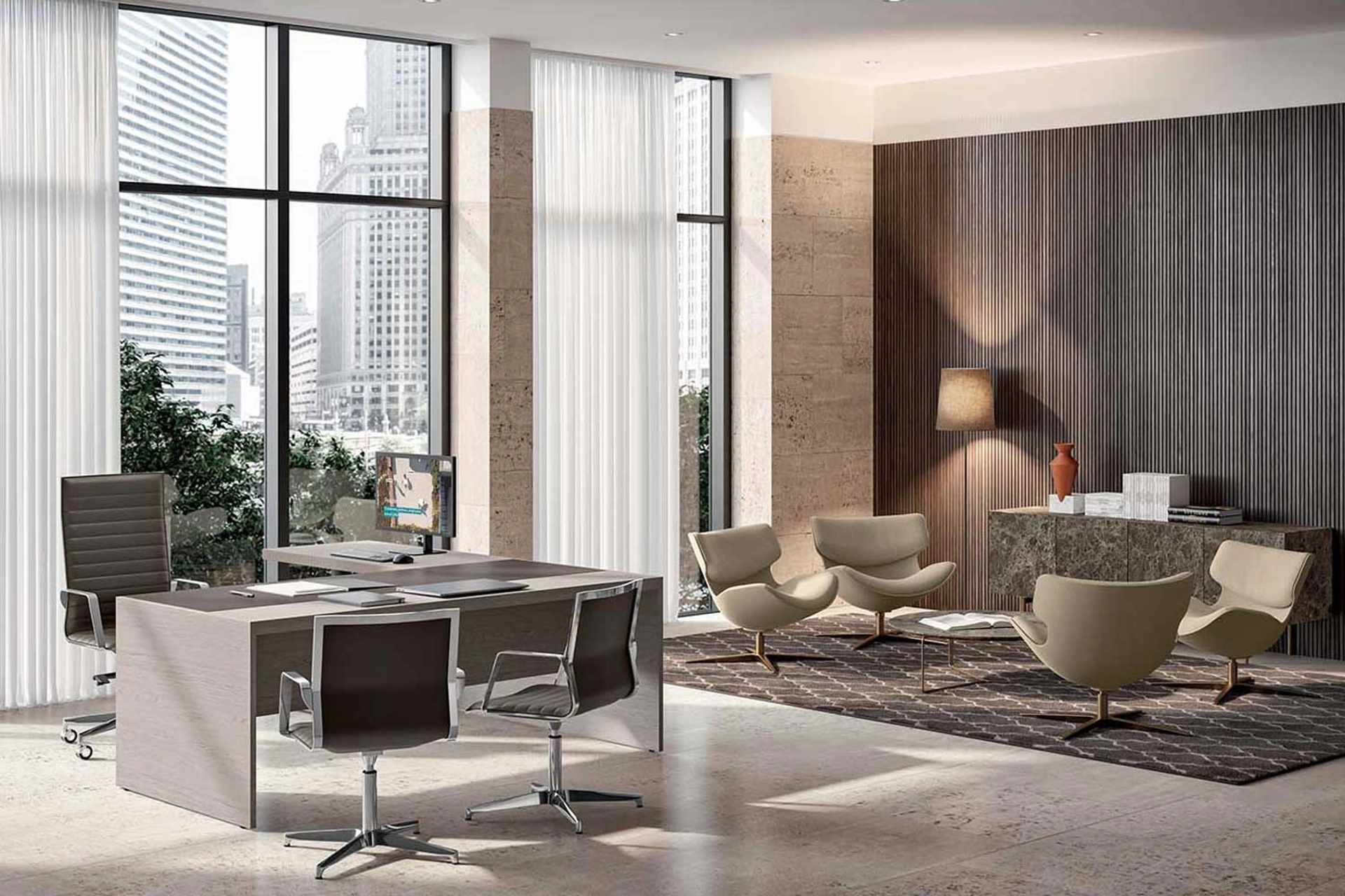Scopri la Scrivania Direzionale e9 di Quadrifoglio, ora disponibile per la visione e l'acquisto presso il nostro showroom Expo Design & Contract Srls ad Amantea. Questo modello, un perfetto esempio di arredo ufficio che unisce estetica e funzionalit , è realizzato in pregiato legno con finitura Olmo grigio e un raffinato inserto in cuoietto. È la soluzione ideale per chi cerca mobili di prestigio per spazi lavorativi moderni, offrendo un'esperienza d'acquisto completa e un servizio dedicato nella nostra area. Vieni a toccare con mano la qualit e il design innovativo che renderanno il tuo ufficio un ambiente unico.