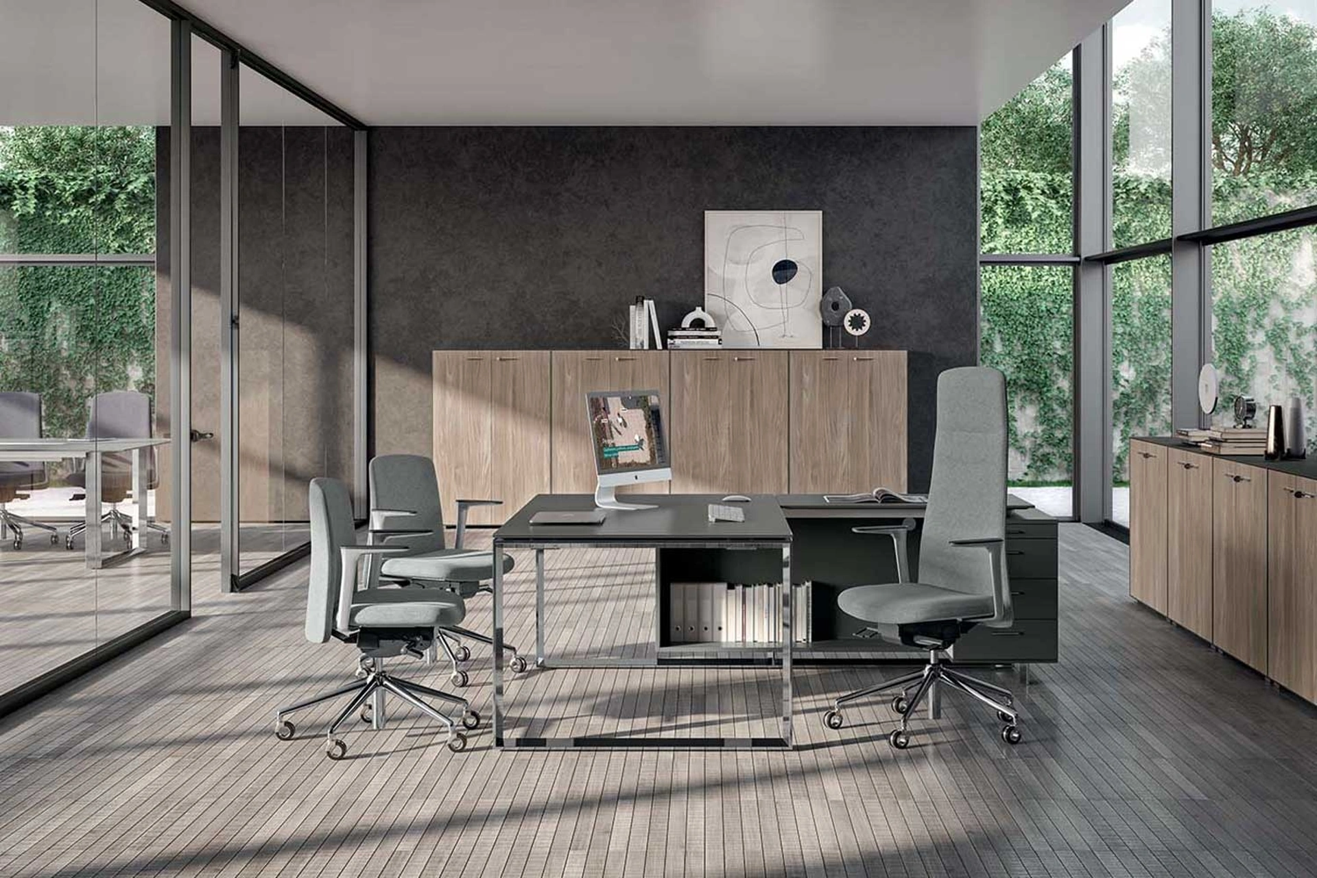 In showroom puoi toccare con mano le più originali soluzioni arredative di Arredo Ufficio in melaminico, sempre belle e resistenti e ideali per locali di ogni tipo. Ammobiliare attentamente uffici operativi e direzionali è fondamentale per offrire la comodità per chi svolge il lavoro e l’accoglienza per i clienti: il nostro showroom ti aspetta. Per il tuo Arredo Ufficio prendono un ruolo di centrale importanza le composizioni arredative con scrivanie direzionali in melaminico, studiate per attrezzare lo spazio. Scrivania Direzionale X7 di Quadrifoglio: è uno dei migliori esempi di arredi per gliambienti lavorativi funzionali e belli da vedere del rinomato brand.